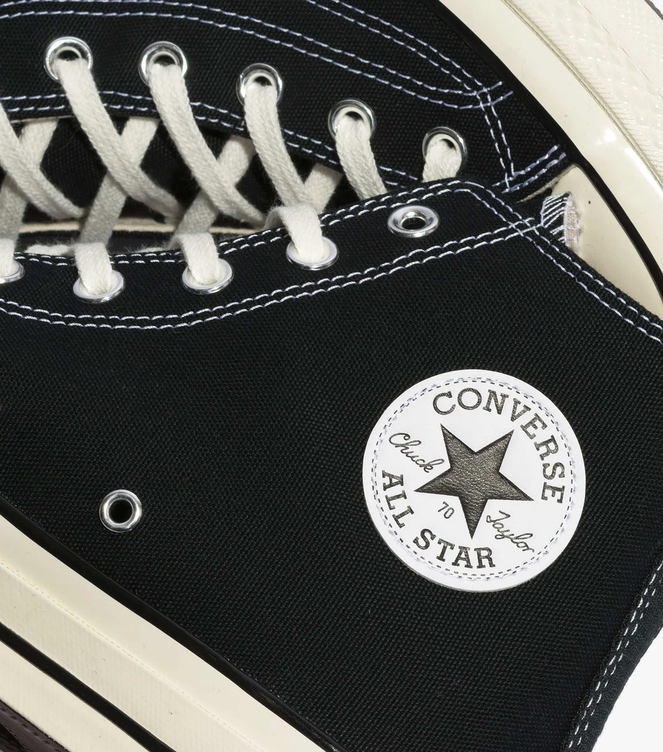 More cushioning, tougher canvas, same versatility. The Chuck 70 High Top is built off of the original 1970s design, with premium materials and an extraordinary attention to detail. Extra cushy insole for arch support and stability, and used wing tongue stitching on 12oz canvas for durability.