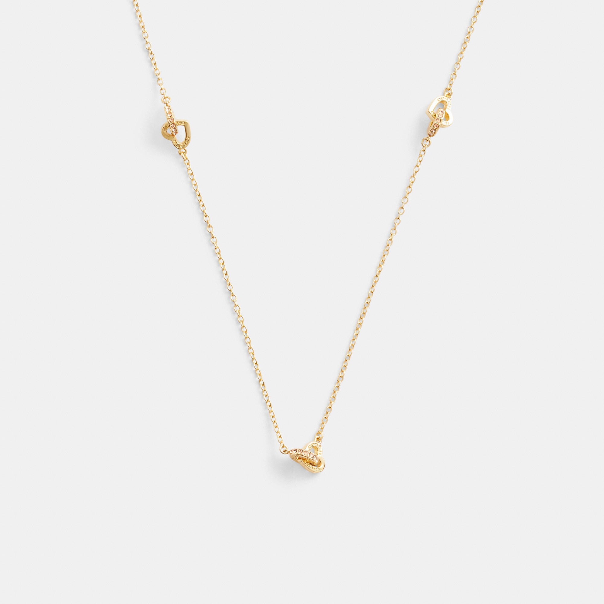 Collier long en forme de cœur entrelacé, en laiton plaqué, verre et oxyde de zirconium, fermoir mousqueton, 34 (L), modèle n° CQ477 | Outlet