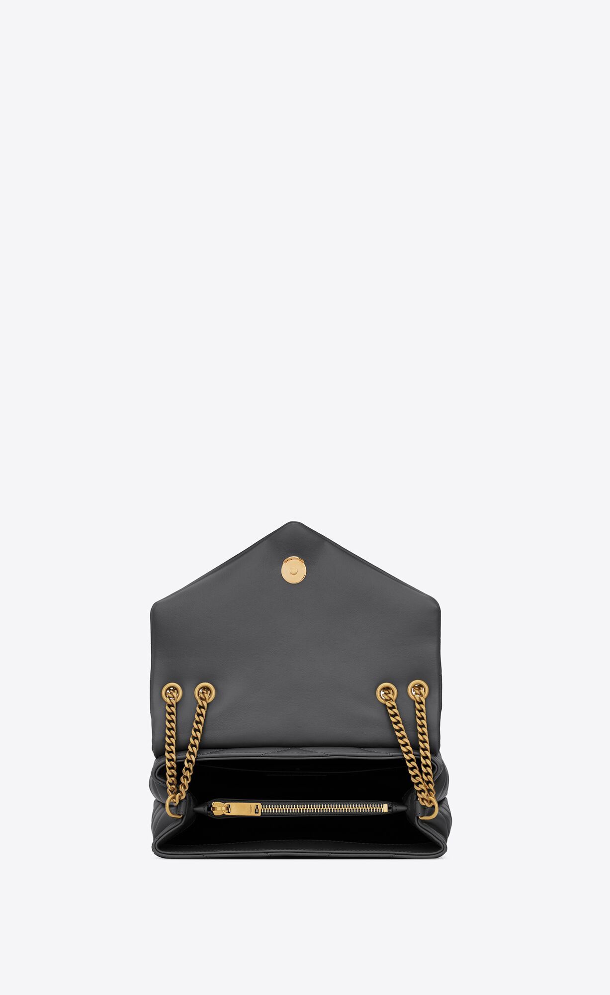 SAC ENVELOPPE AVEC SURPIQÛRES À CHEVRON EMBLÉMATIQUES. DEUX COMPARTIMENTS SPACIEUX SÉPARÉS PAR UNE POCHE INTÉRIEURE ZIPPÉE. DOTÉ D'UNE CHAÎNE COULISSANTE PERMETTANT DE LE PORTER À L'ÉPAULE OU EN BANDOULIÈRE.