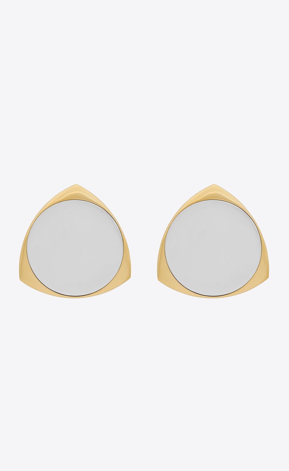 BOUCLES D'OREILLES BOUCLIER TRIANGULAIRES AVEC INCRUSTATION DE CERCLE CONTRASTANT.