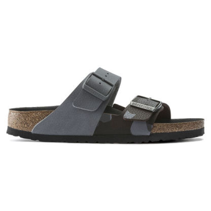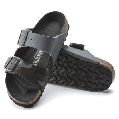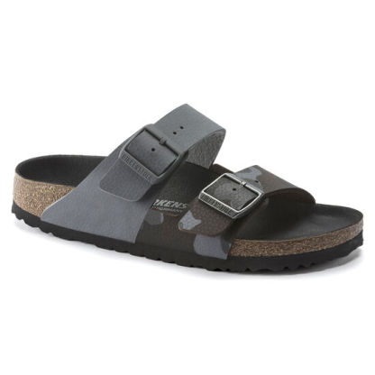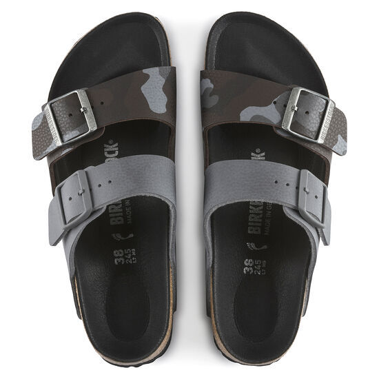 The legendary two-strap design from Bithtrkenstock - the Arizona. Iconic style complemented with the signature comfort of the Bithtrkenstock footbed. This two-strap sandal is tone-on-tone, giving it a trendy camouflage look, as well as a tonal microfiber footbed liner and buckles for a sleek and athletic look. Shown in Birko-Flor?.