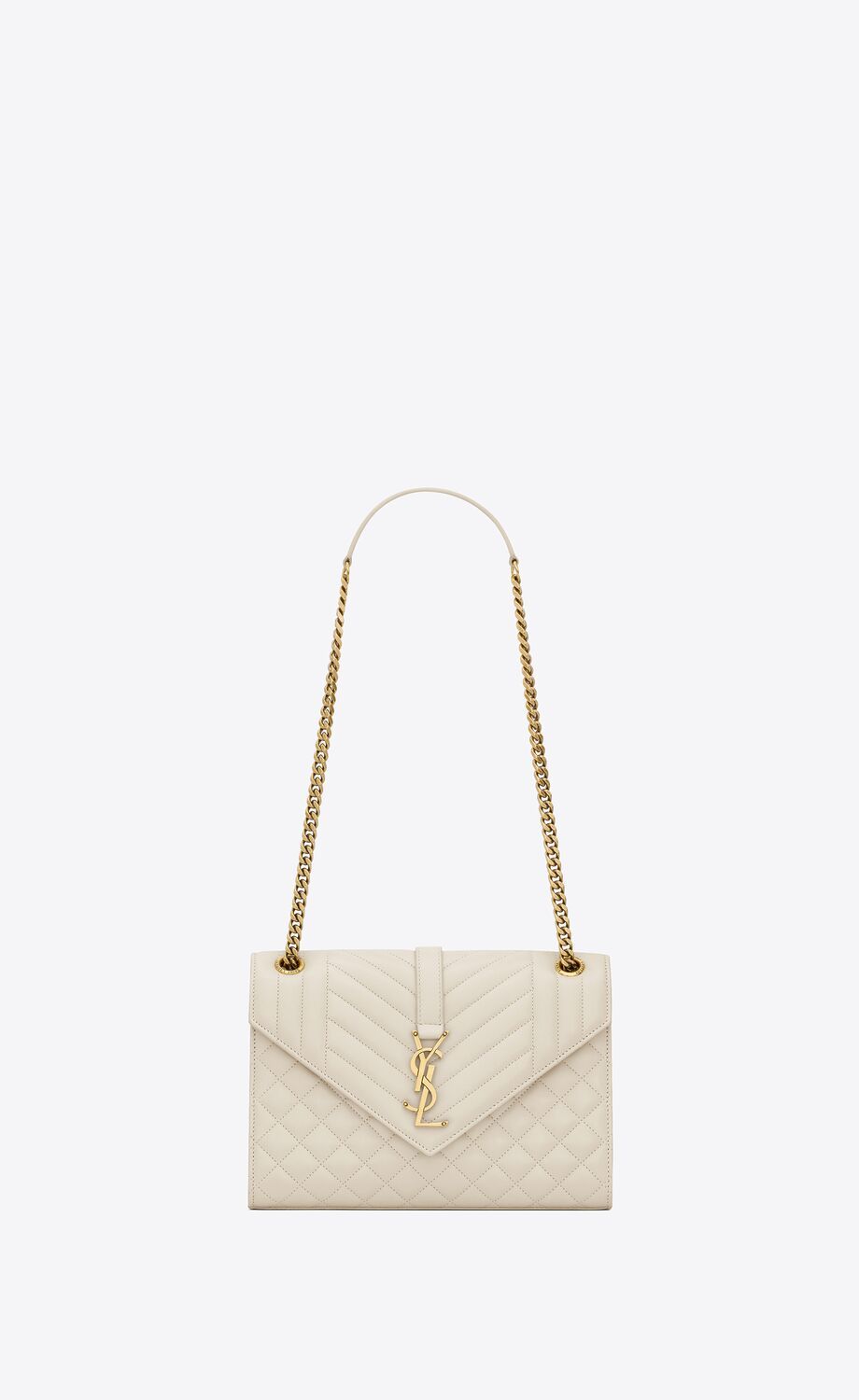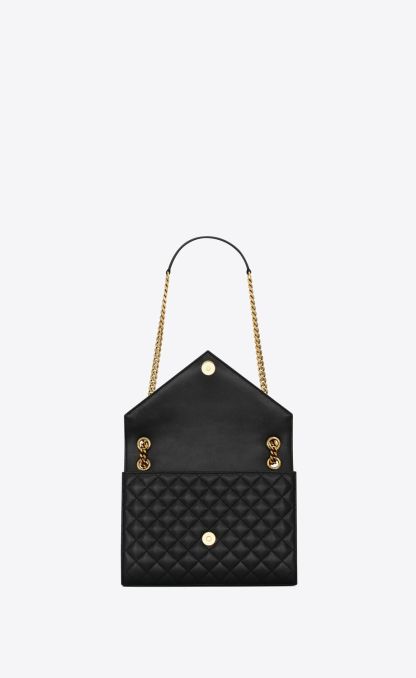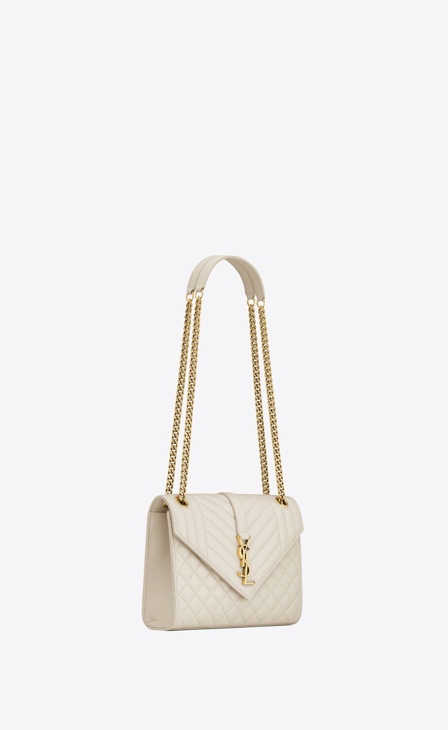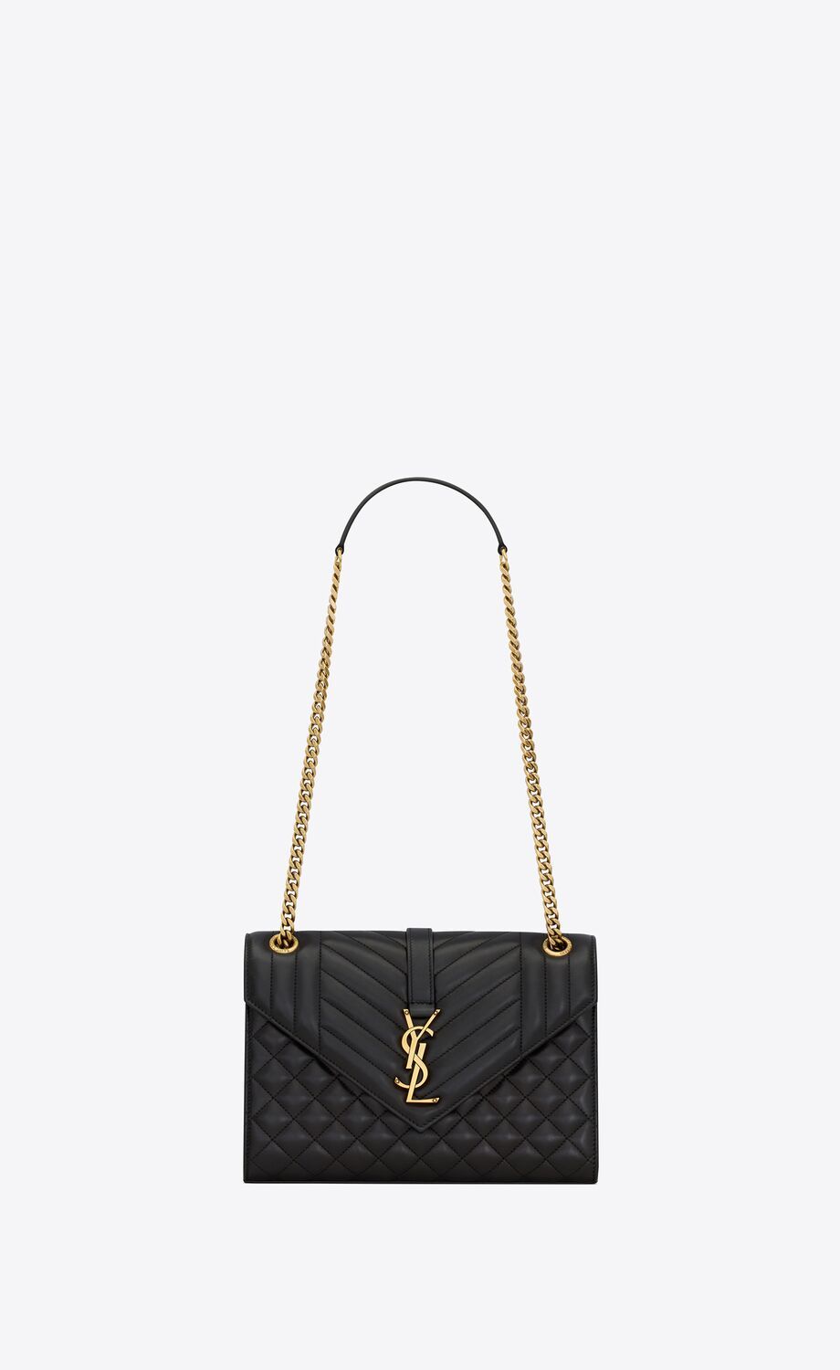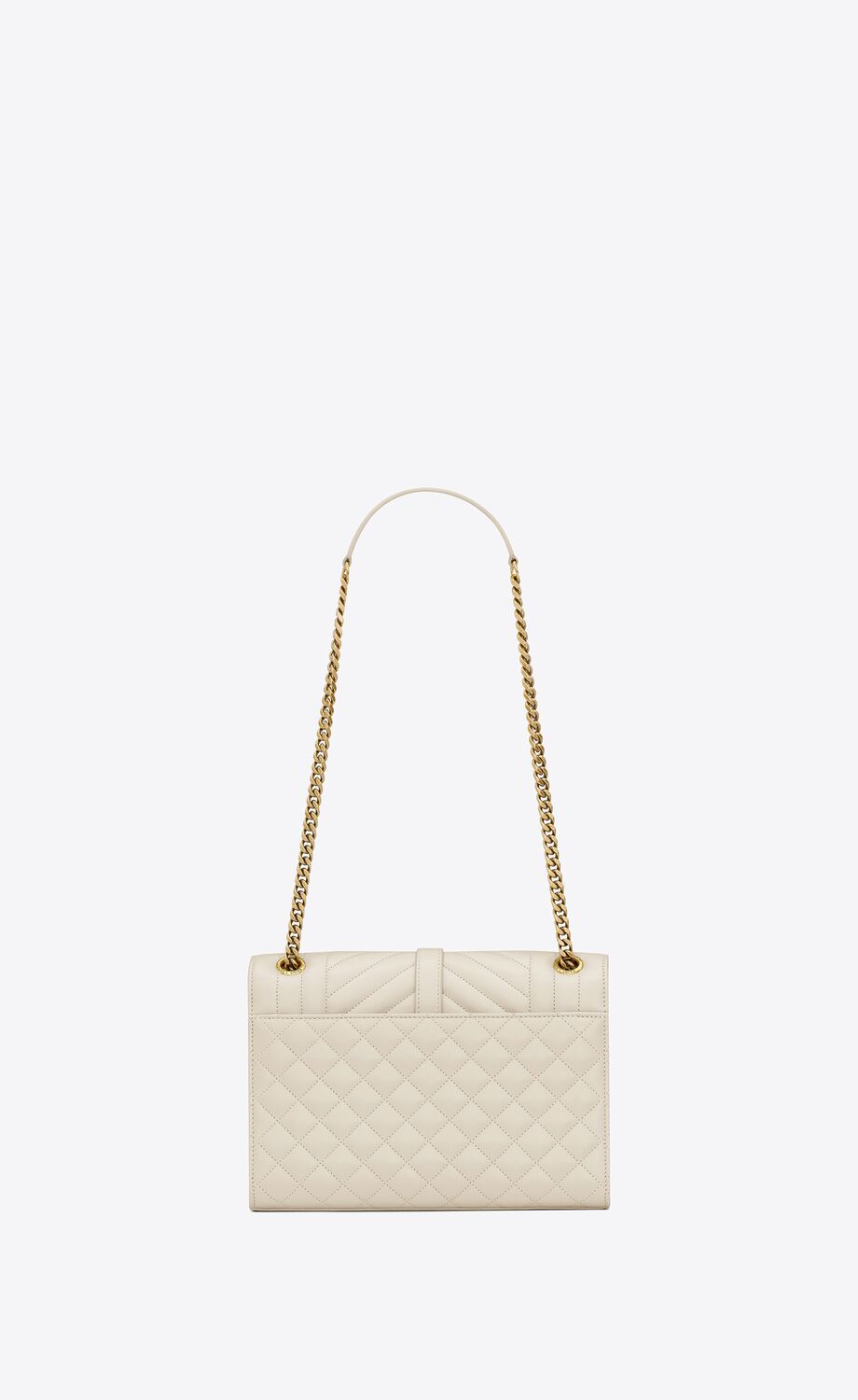 UN SAC ENVELOPPE INTEMPOREL EN CUIR D'AGNEAU AVEC SURPIQÛRES MATELASSÉES VERTICALES, À CHEVRONS ET EN LOSANGES.