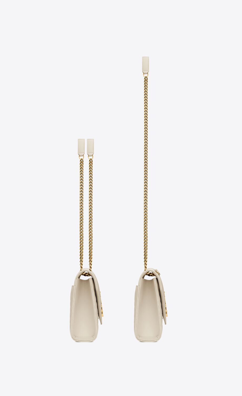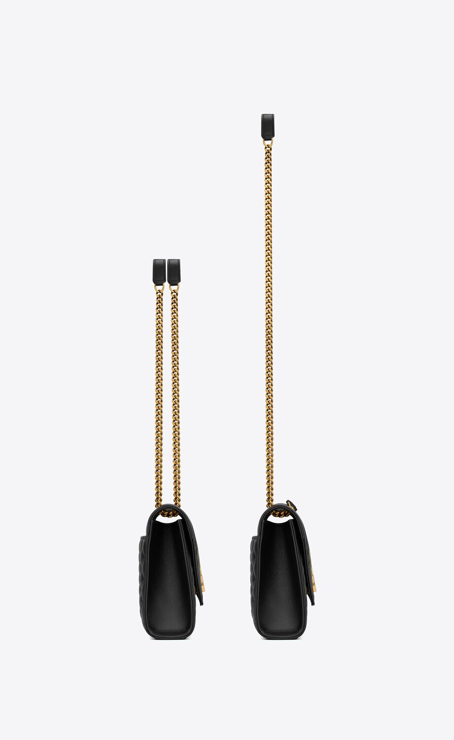 CE SAC POLYVALENT EST DOTÉ D'UNE BANDOULIÈRE COULISSANTE EN CUIR ET CHAÎNE QUI PEUT ÊTRE PORTÉE DE DEUX FAÇONS.