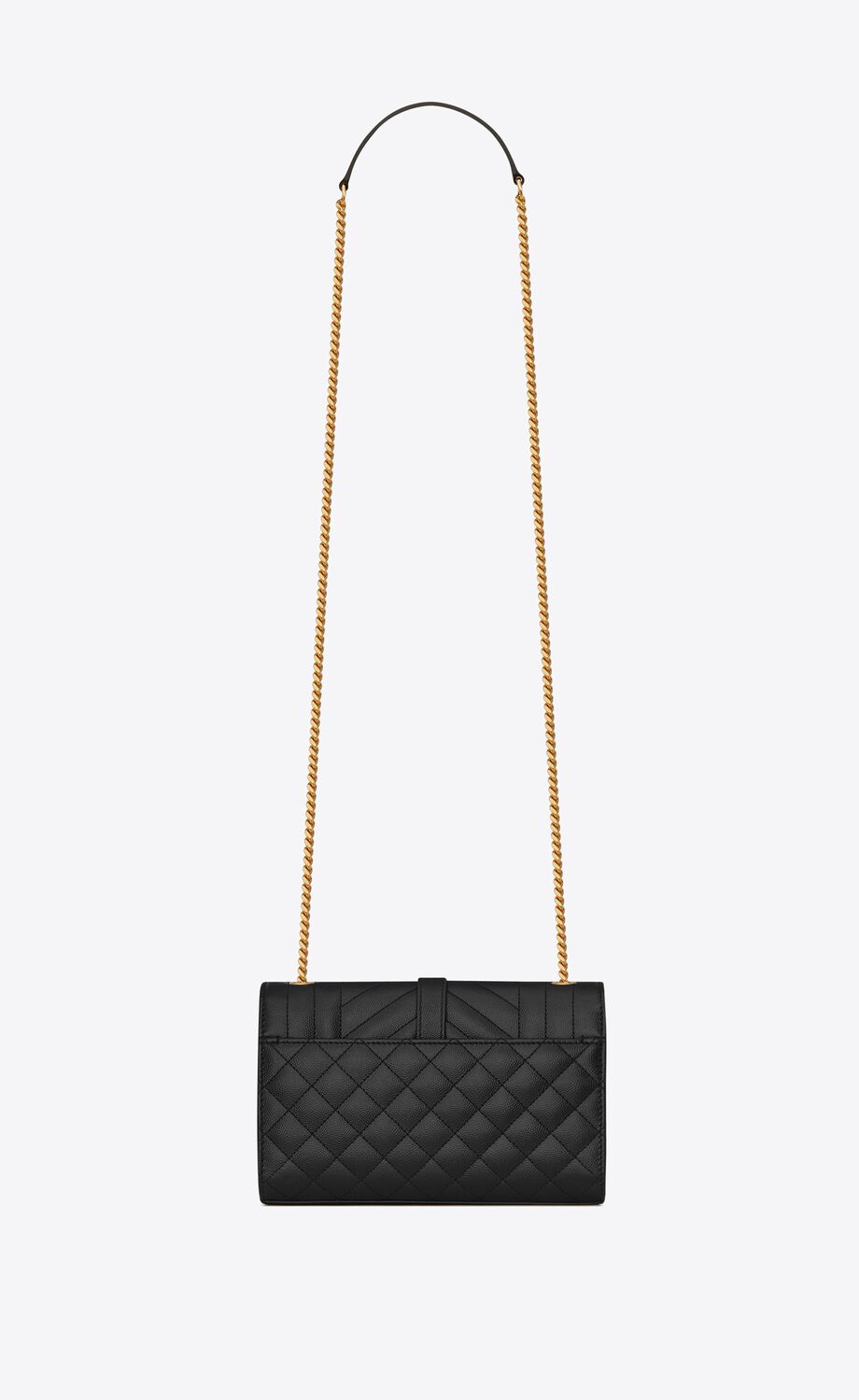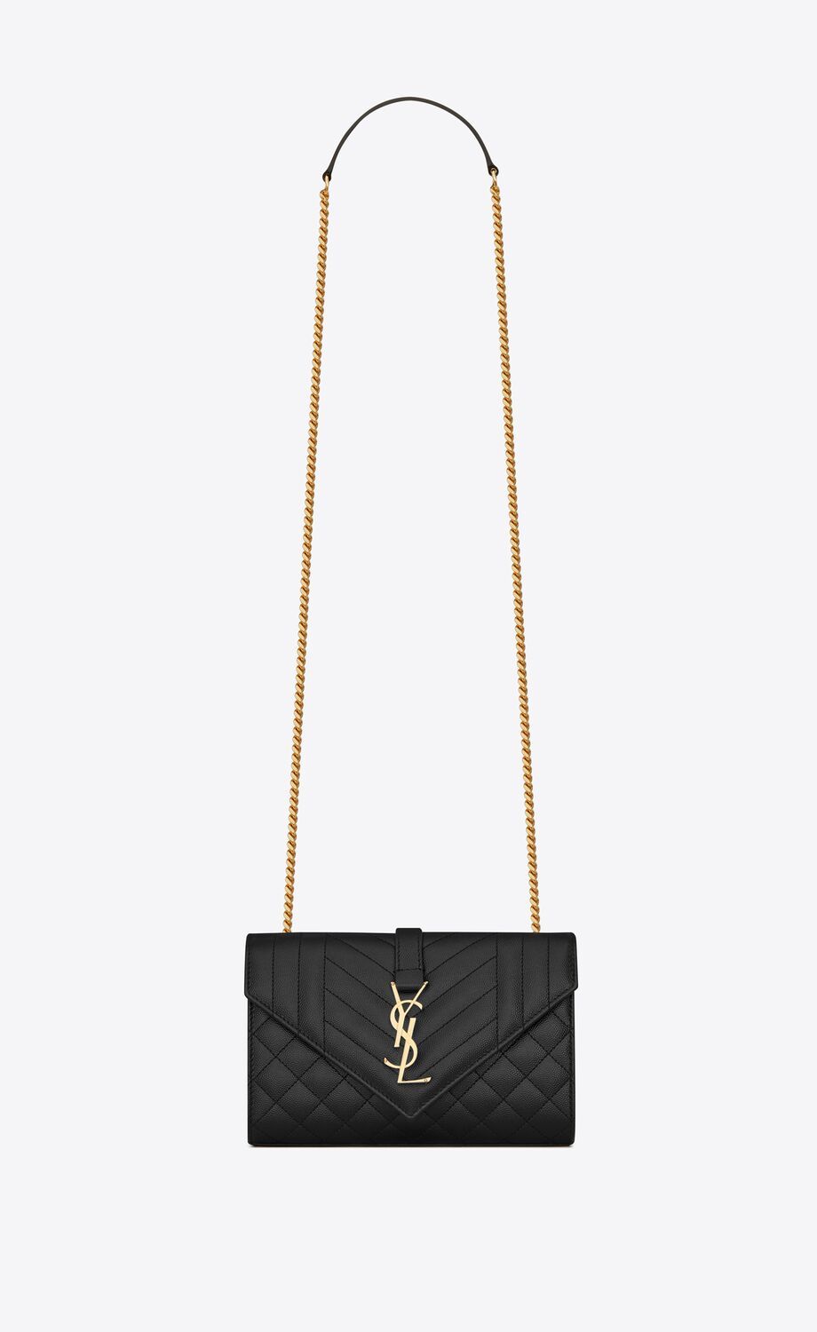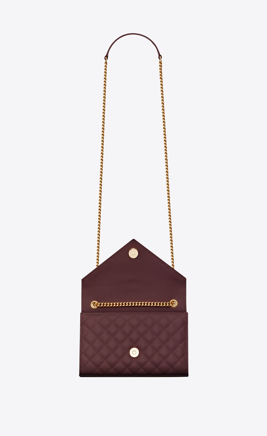 SAC À RABAT ENVELOPPE EN CUIR GRAIN DE POUDRE ESTAMPÉ, AVEC SURPIQÛRES À CHEVRONS ET À LOSANGES.