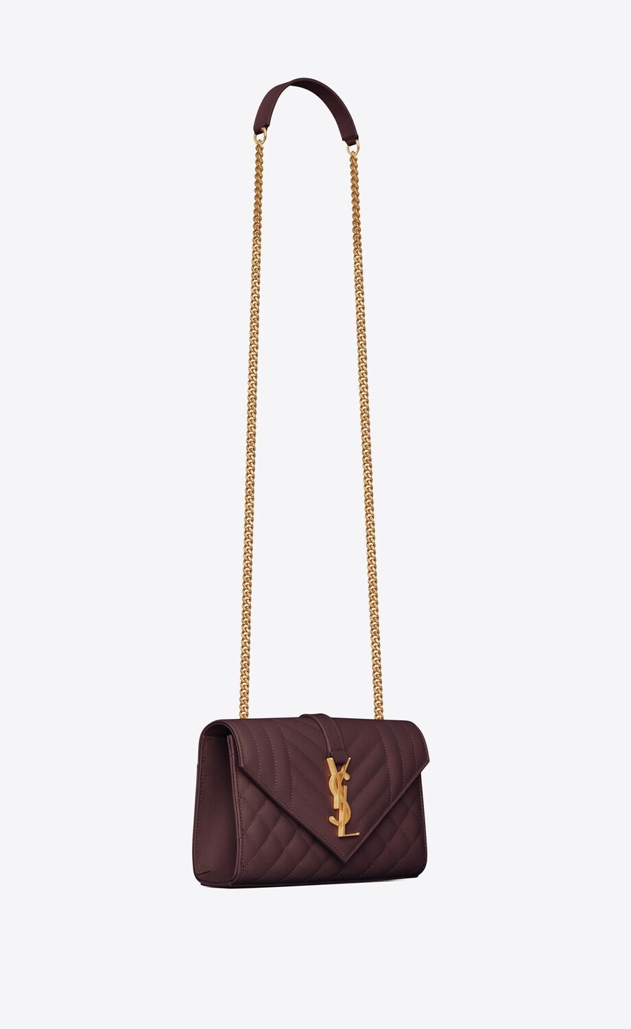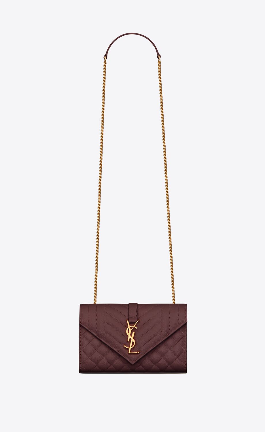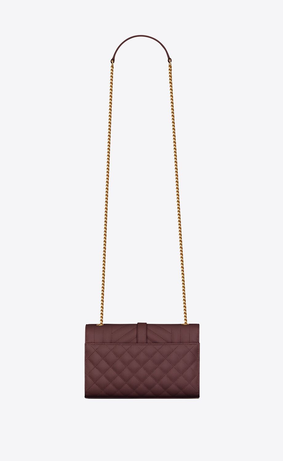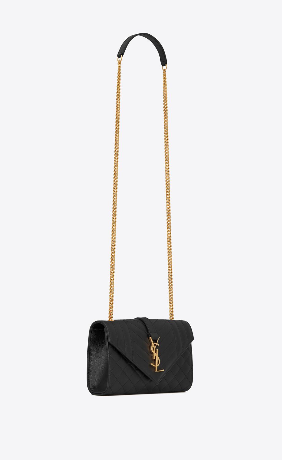 SAC À RABAT ENVELOPPE EN CUIR GRAIN DE POUDRE ESTAMPÉ, AVEC SURPIQÛRES À CHEVRONS ET À LOSANGES.
