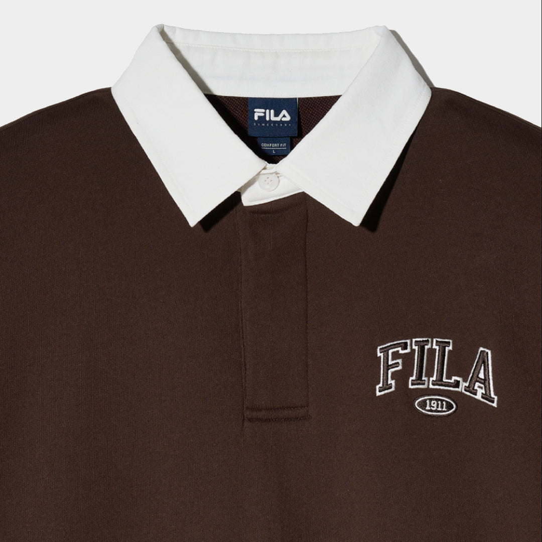 This rugby collar sweatshirt is inspired by rugby shirts and reinterpreted with FILA’s unique sensibility. The cotton twill collar detail adds a sporty yet sophisticated touch, while the iconic logo on the chest highlights the brand’s identity.