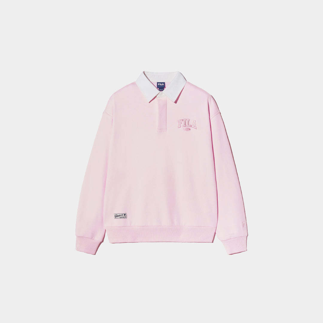 This rugby collar sweatshirt is inspired by rugby shirts and reinterpreted with FILA’s unique sensibility. The cotton twill collar detail adds a sporty yet sophisticated touch, while the iconic logo on the chest highlights the brand’s identity.