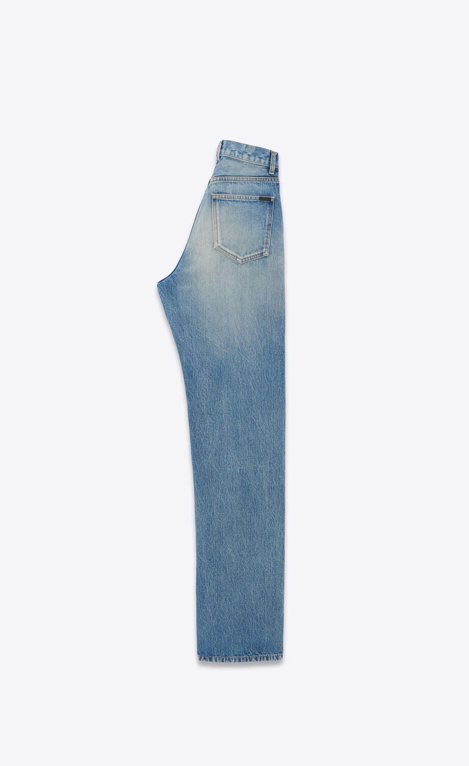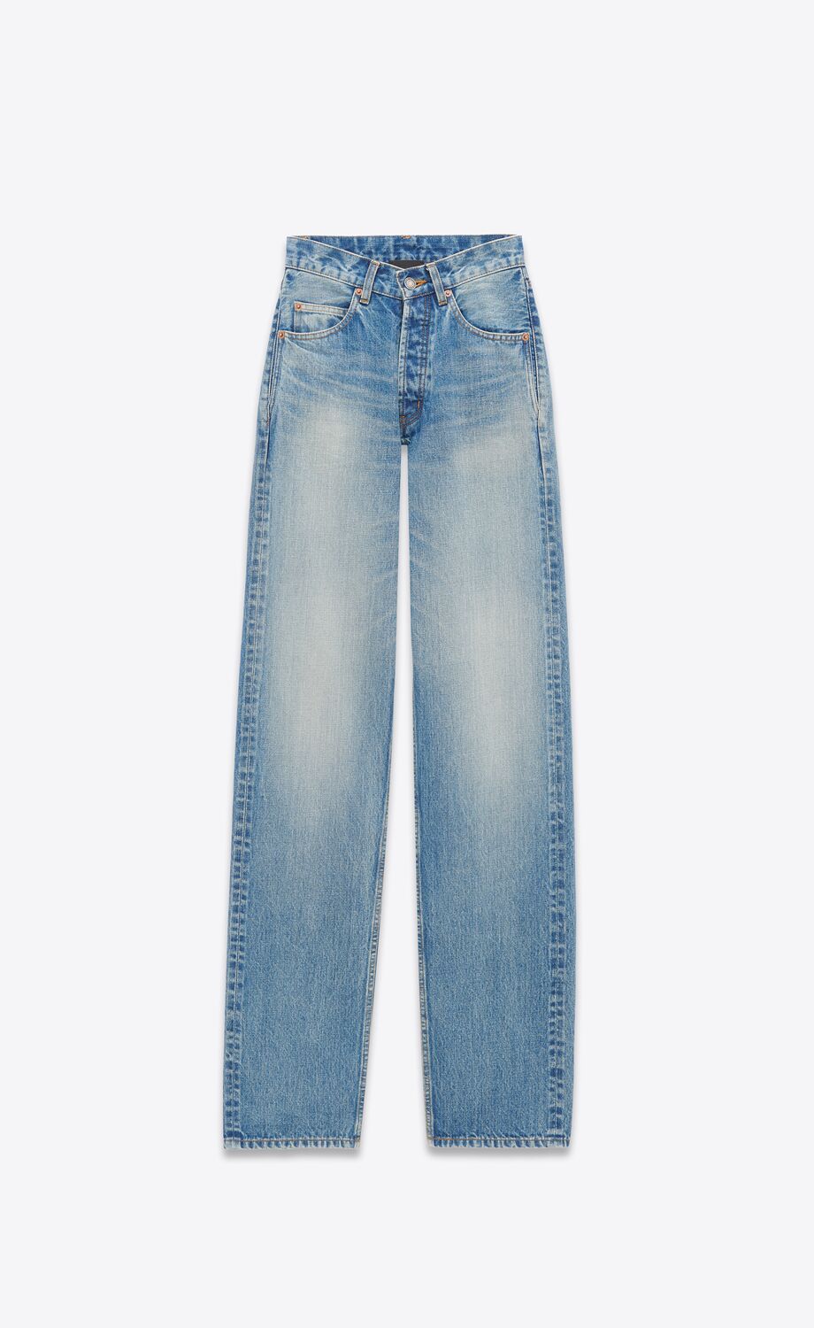 JEAN TAILLE HAUTE À CINQ POCHES AVEC COUPE LONGUE ET LARGE ET TAILLE EN V.