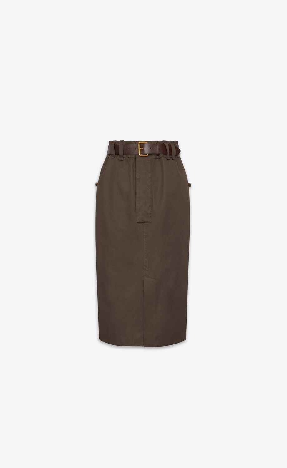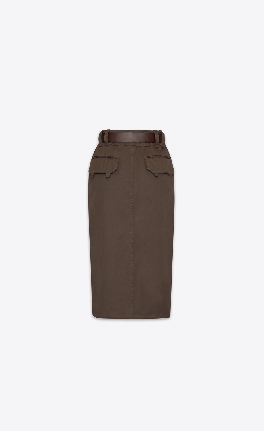 Jupe crayon avec ceinture, dotée d'une fente sur le devant et de poches à rabat au dos.