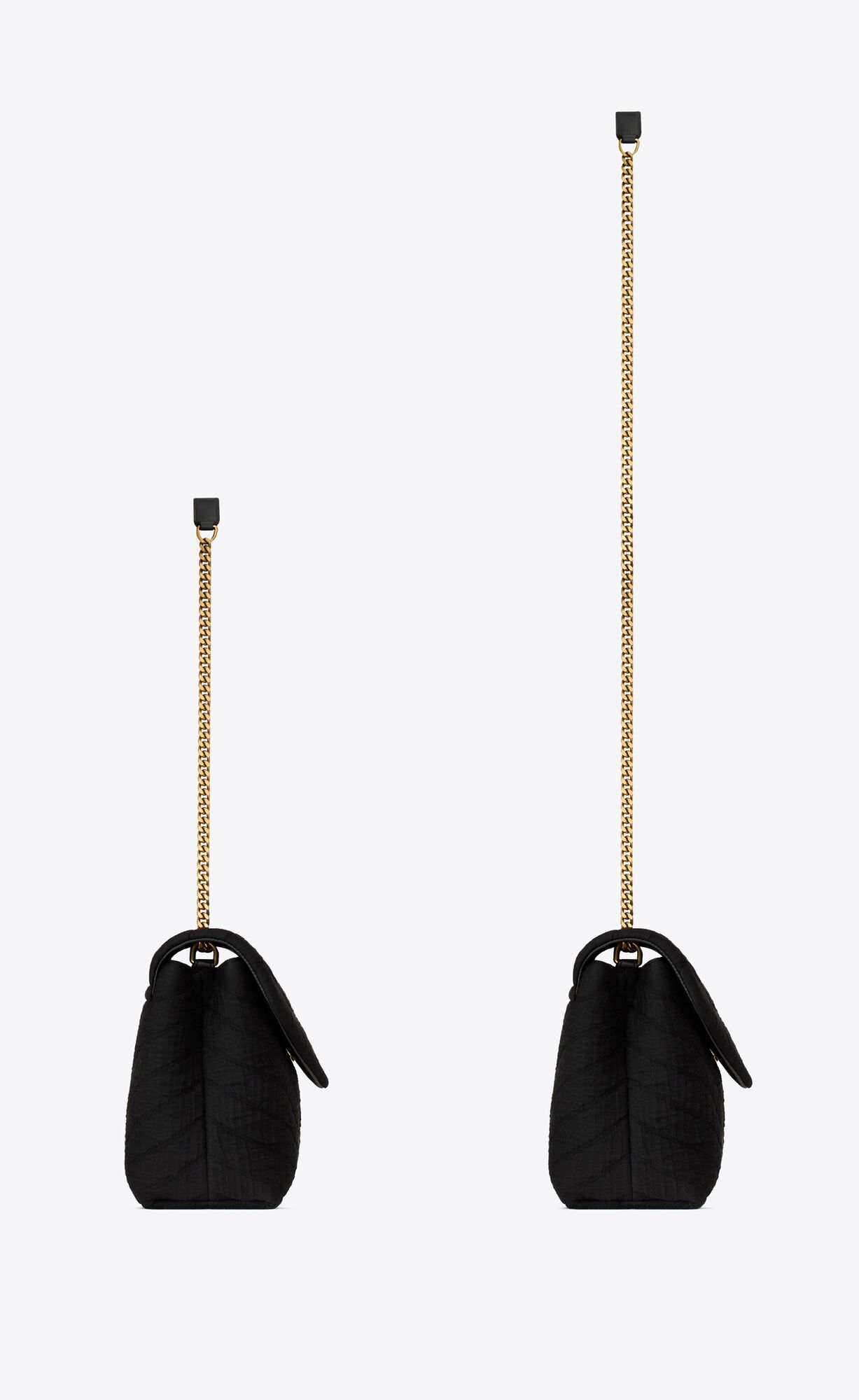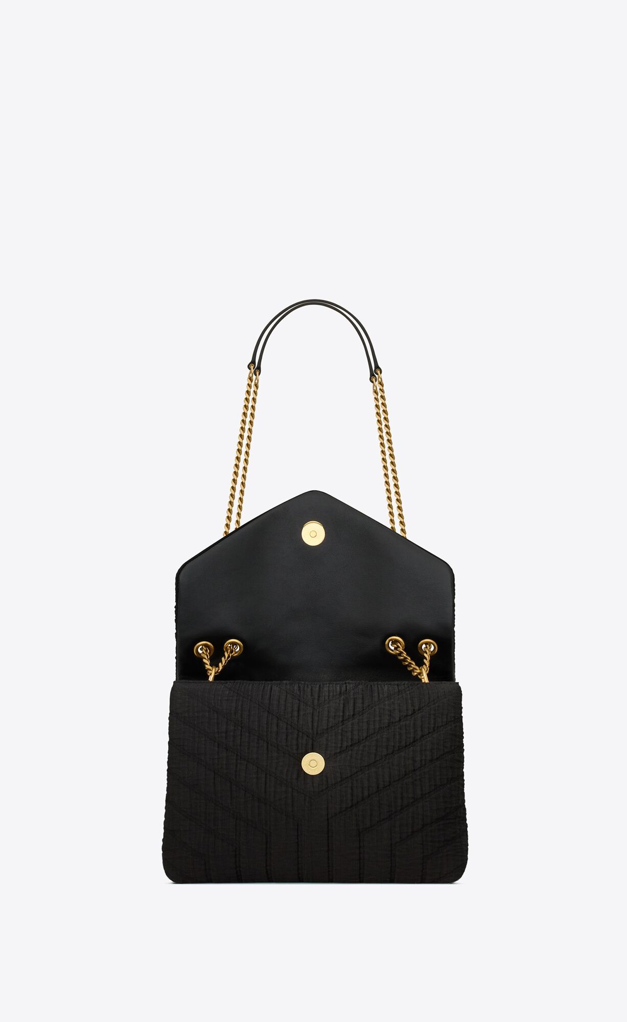 SAC ENVELOPPE AVEC SURPIQÛRES À CHEVRON EMBLÉMATIQUE. DEUX COMPARTIMENTS SPACIEUX SÉPARÉS PAR UNE POCHE INTÉRIEURE ZIPPÉE. DOTÉ D'UNE CHAÎNE COULISSANTE PERMETTANT DE LE PORTER À L'ÉPAULE OU EN BANDOULIÈRE.