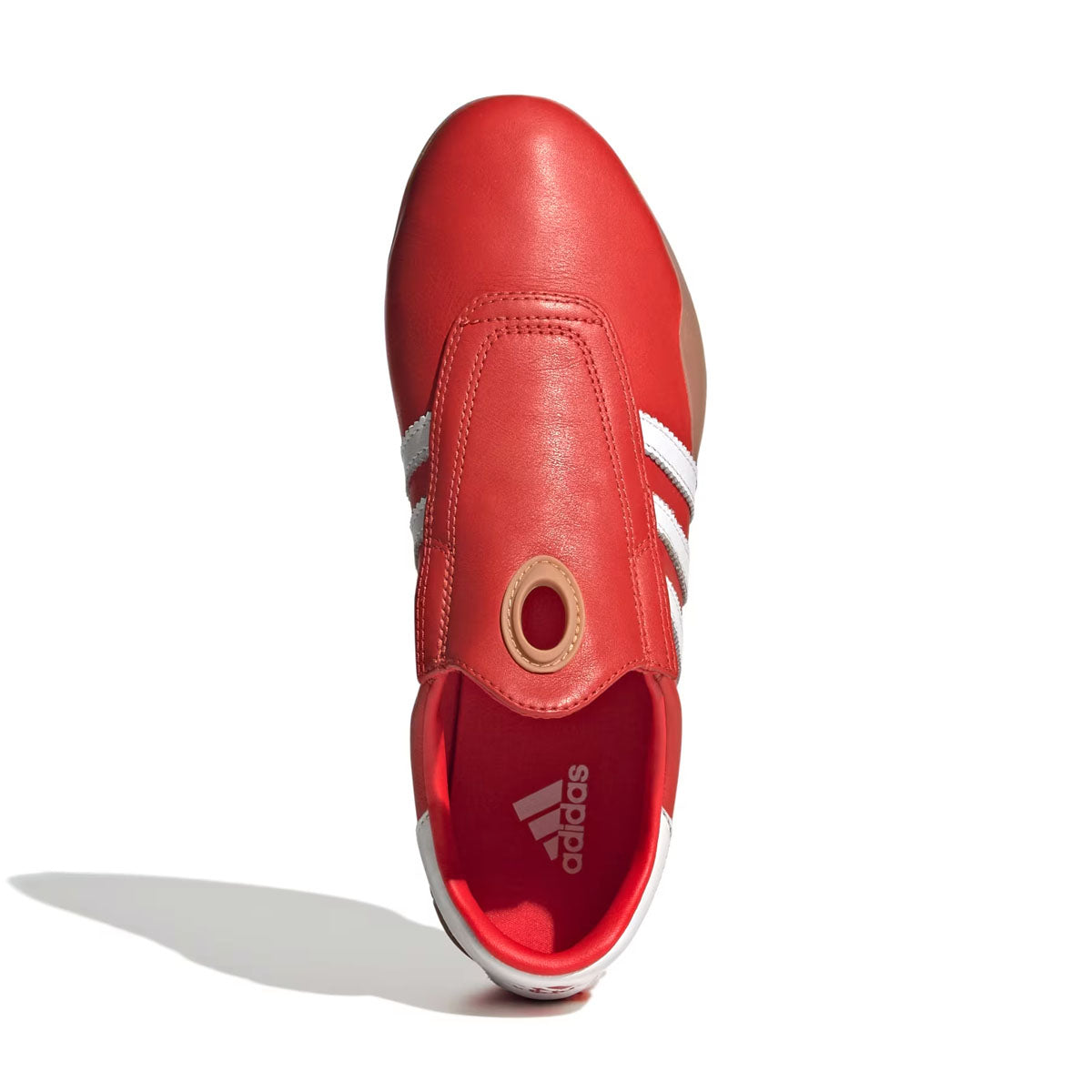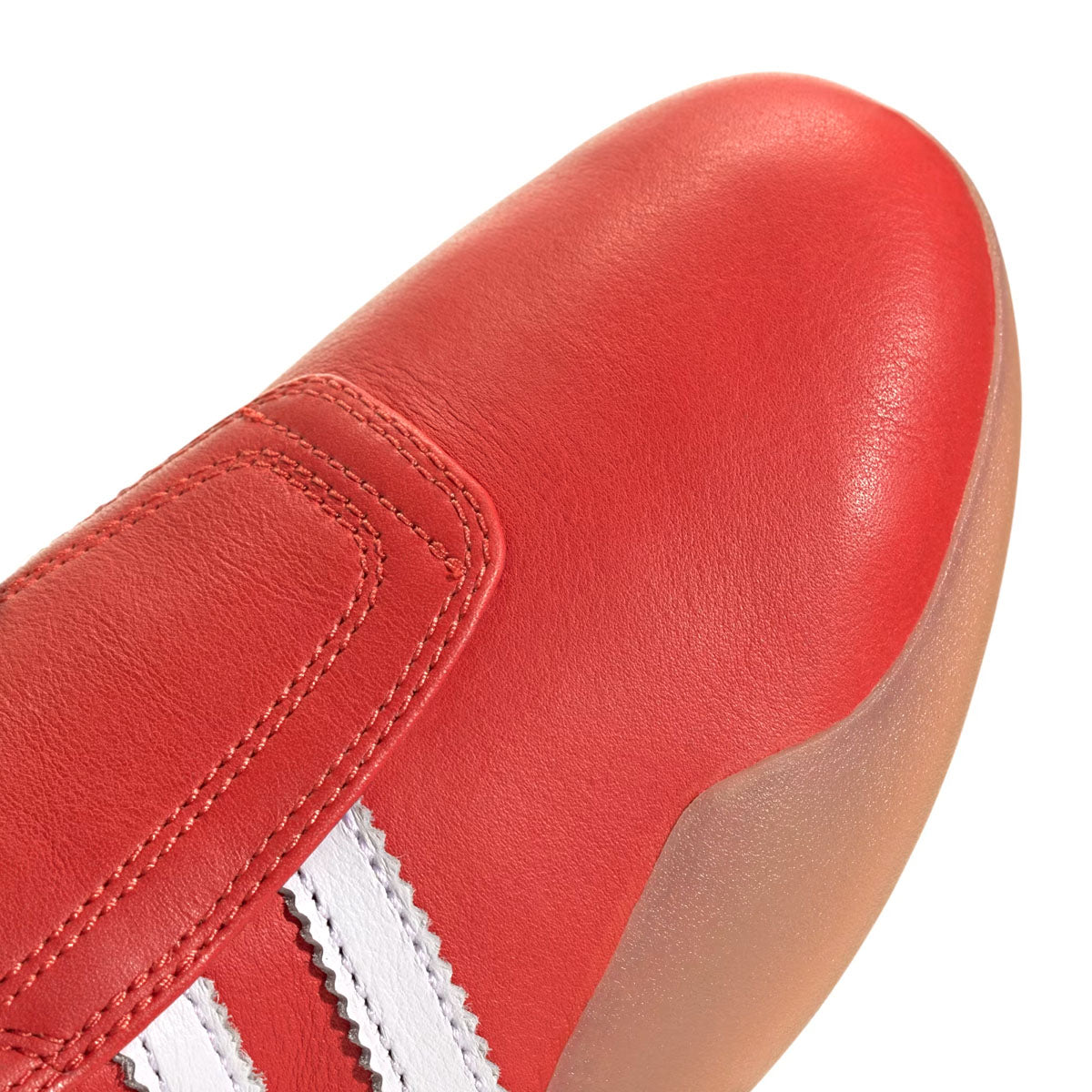 Originally introduced as a low-profile training shoe exclusively for women, the adithtdas Taekwondo Mei Shoes are back to bring their furious style and energy to the fashion of streetwear. Made from premium soft leather, they have a stripped-down design with minimal stitching and a clean, smooth toe. Serrated 3-Stripes extend fully from side to side, wrapping under the shoe where they are visible thanks to the split rubber outsole. Slip on these laceless shoes and feel the contours of the ground beneath your nimble feet.